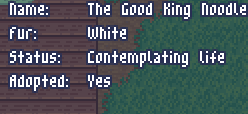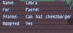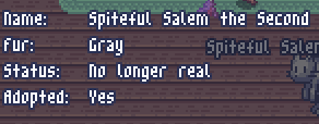 Amazing game! I love the silly names so much haha! I do have a suggestion to editing names, though I DO love the silly ones! I just think it'd be nice to name some cats after the cats I used to have.